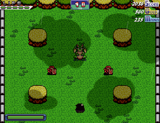 Hello! This is an action game that mixes elements of Gameboy Zelda with 90s Beat 'em Up. The idea is to make an old-school style game where you go through 9 stages until you finish the game. In this DEMO, you can test the first stage of the game. Unfortunately, the Secondary Attack system is not ready yet, but the store where you can exchange Gold for upgrades is practically ready.